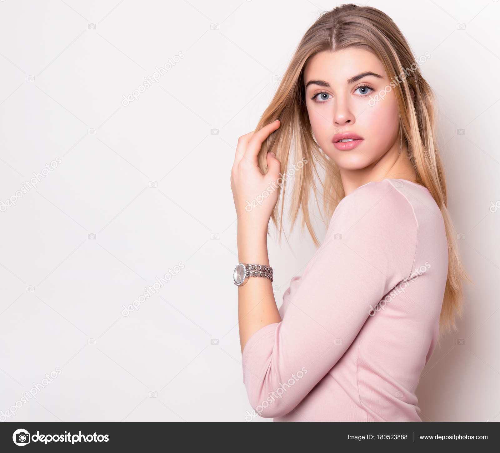 Beautiful Young Woman Long Hair Wearing Wrist Watch Stock Photo By C Anetta 180523888